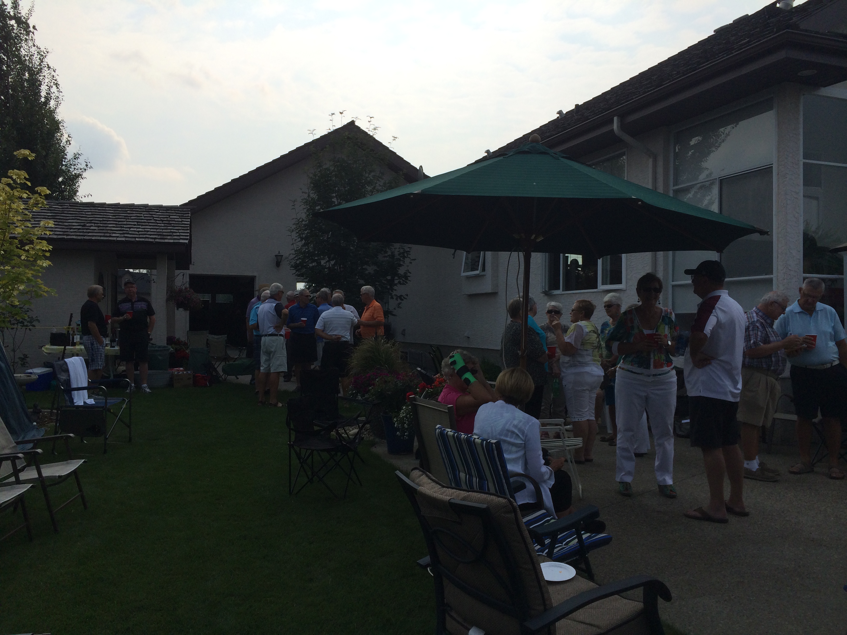 A big thank you to Bernie & Brenda Kropp for extending such great Gyro hospitality by hosting this summer’s Club picnic. A beautiful Central Alberta afternoon – 25 degrees & 70% humidity with no mosquitos. Talk of what everyone has been doing over the summer. And, as usual at all Gyro functions; copius amounts of appetizers, burgers, wieners, salads, and deserts washed down with one’s libation of choice made for a wonderful afternoon.