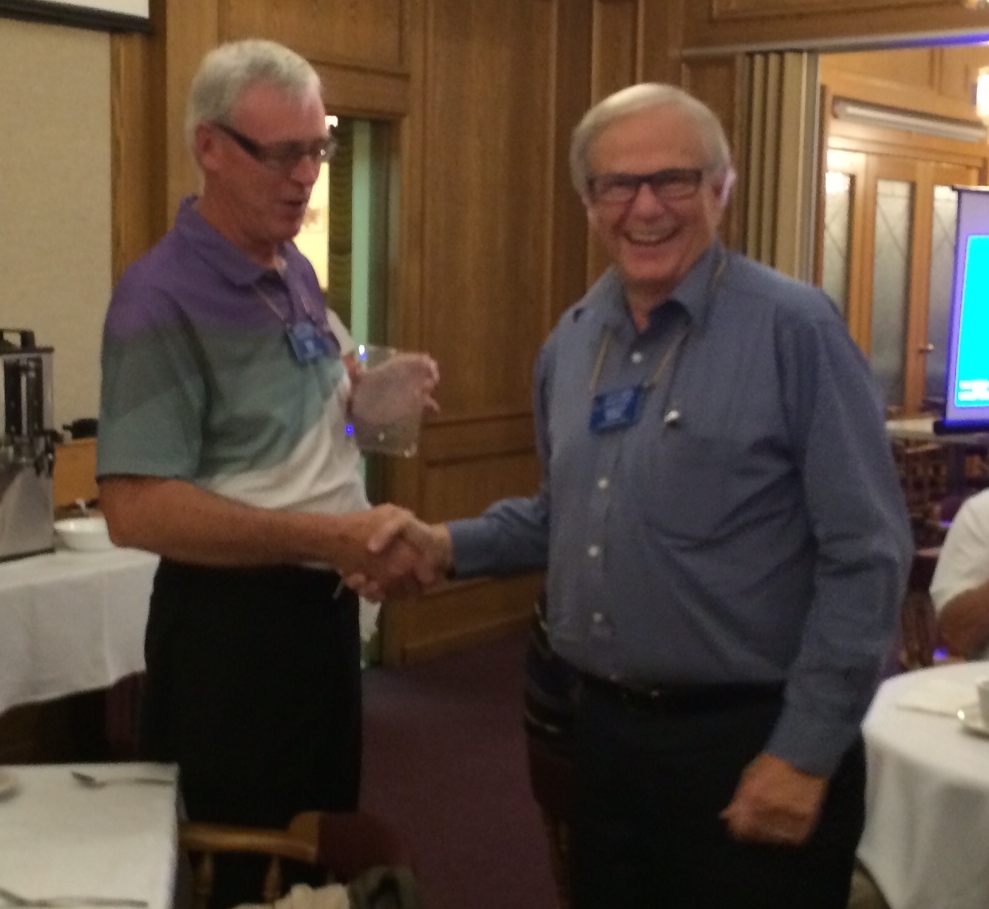 Another great evening at the German Canadian Club, 46 people attended 24 Gyro’s one perspective Gyro, spouses and widows. After a great meal Scott received his award from District for most “Entertaining Bulletin” for last year. As we all look so forward to his bulletin we can all concur in it’s entertainment value. Congratulations Scott.