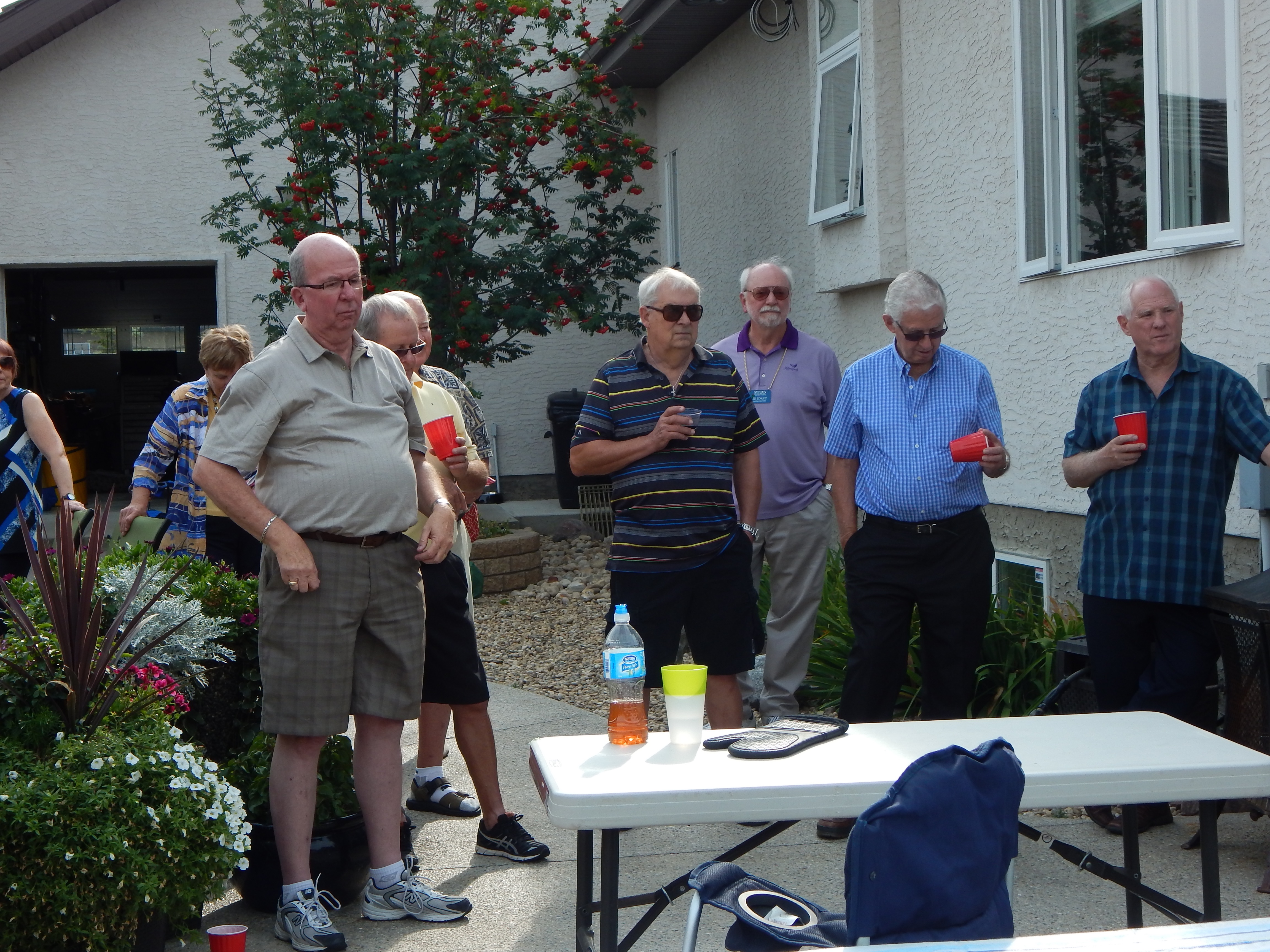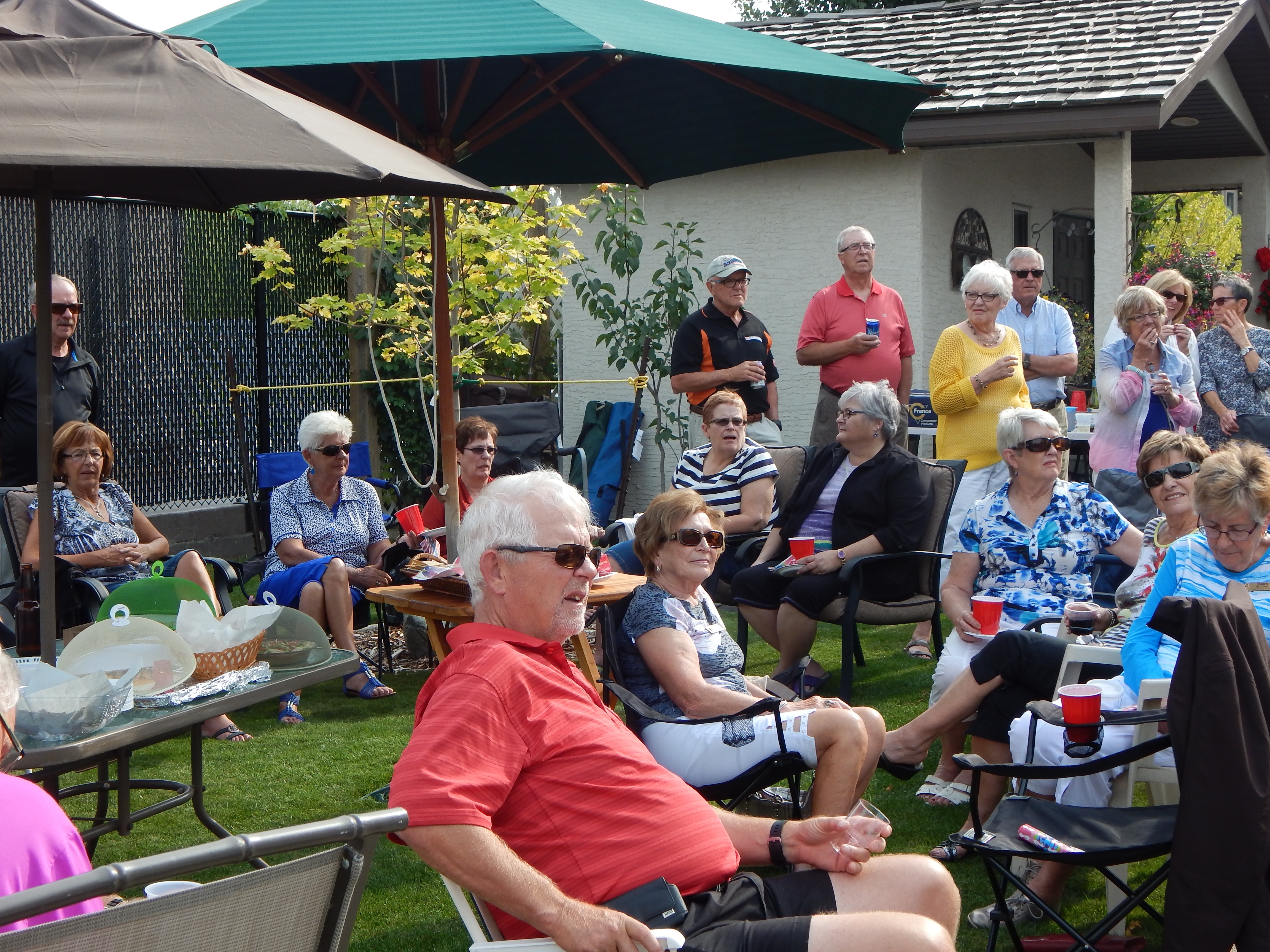 On Saturday, August 29th, 58 people congregated at the residence of Bernie & Brenda Kropps for our Annual Gyro BBQ. Everyone pitched in with an appetizer, salad or dessert, however we were unable to consume all of the goodies provided. In addition to the goodies brought to the gathering there were hamburgers, hot dogs & smokies provided. Needless to say everyone thoroughly enjoyed the afternoon and some the early evening of conversation and catching up of the summer events. Special presentations were presented to Jim Copeland (Best Gyro Website) and the upcoming 40th Anniversary of the Sherwood Park Gyro Club. These presentations were made by Allan Pettney – District VIII Governor. Special thanks to the Kropps for their hospitality and backyard for this special event.