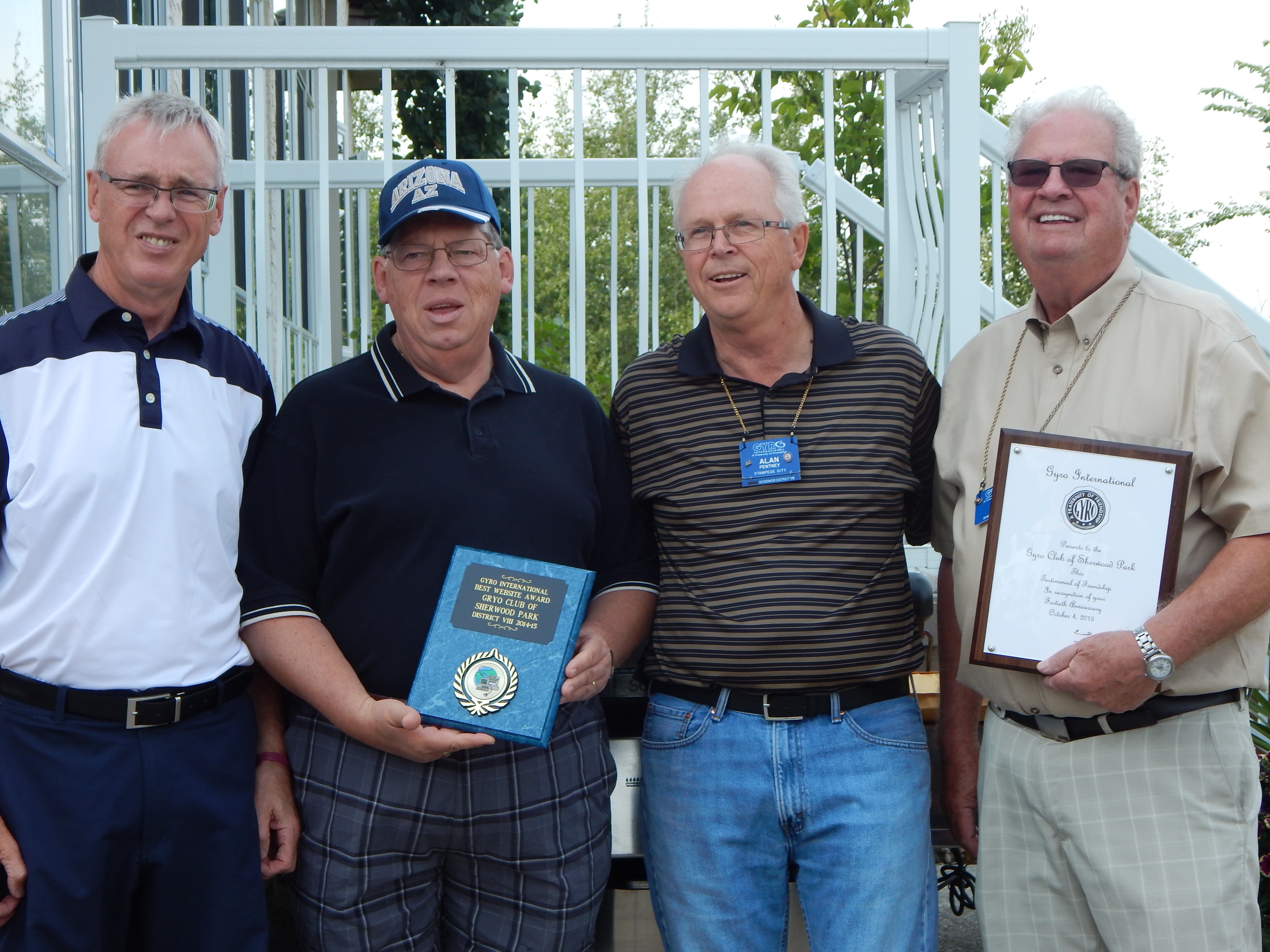 District VIII Governor Alan Pentney presented 2015 Gyro Internation Best Website award to Jim Copeland & Ray Davis. He also presented a plaque commemorating the Club’s 40th anniversary which officially takes place on October 5th.